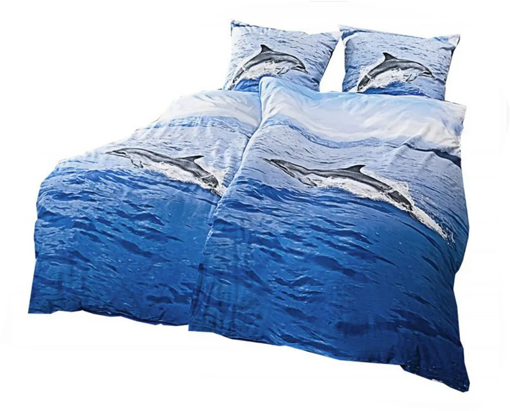 2tlg. Delfin – Meerstiere – Wende Bettwäsche Bettwäschegarnitur 135x200cm 80x80cm 100% Baumwolle mit Reißverschluss, 60° Wäschen. n dieser mit Delfinen bedruckter Bettwäsche, werden Sie wunderbar schlafen.