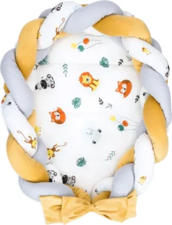 Babynestchen Set Neugeborene 90×50 Cm Minky – Kuschelnest Baby Nestchen 5-teilig Kokon Eule Hellgrau