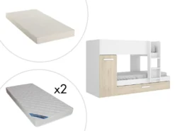 Etagenbett Ausziehbett Mit Stauraum + Matratzen – 3x 90 X 190 Cm – Weiß & Naturfarben – ANTHONY