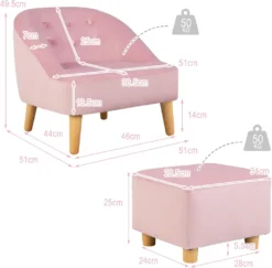 HOMCOM Kindersessel Mit Fußhocker, Kindercouch Mit Hocker, Kindersofa, Sofa Sessel, Rosa