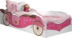Kinderbett Zoe Weiß Pink 90*200 Cm Mädchen Kinderzimmer Kutschen Liege Prinzessinen Jugendbett