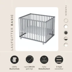 Sämann Beistellbett Premium 90×55 Cm Mit Matratze, Schwarz 4 In 1 Umbaubar Mit Umbauseite