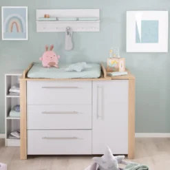 Roba Wickelkommode Mit Wickelansatz, 2 Schubladen, 1 Tür, 1 Offenes Fach, Weiß, Wickelhöhe: 90cm