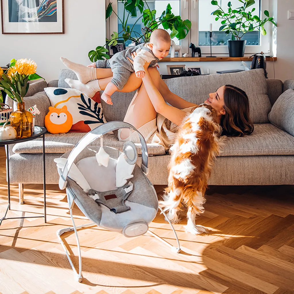 Eine spezielle, verstärkte Konstruktion ermöglicht die Verwendung der Babywippe durch Kinder mit einem Gewicht bis zu 9 kg.