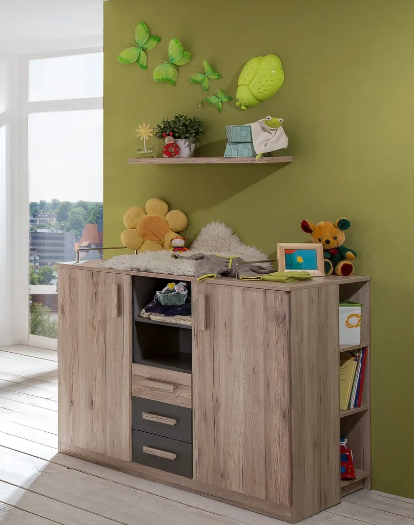 zudem hat dieses Baby Komplett Zimmer ein Standregal und ein Wandboard