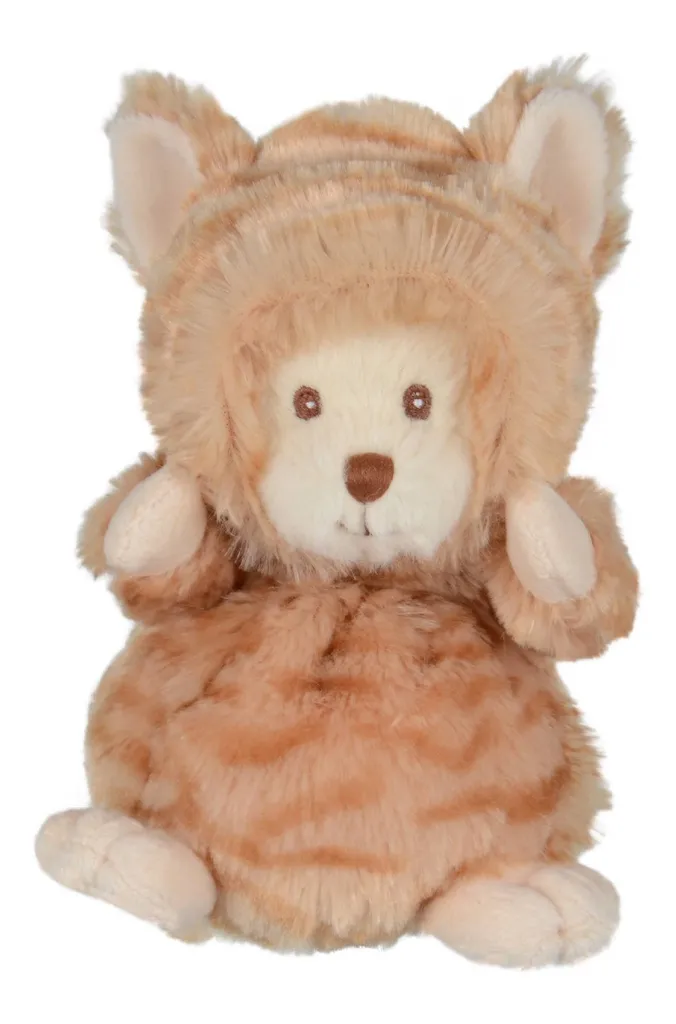 Tolle Handarbeit aus dem Hause Bukowski. Der Verwandlungs-Bär Ziggy, trägt ein Katzen Kostüm und seine Kapuze hat süße große Ohren. Sein Fell so weich, der Blick so goldig und mit seinen 15 Zentimeter passt der Bär in jede Tasche. Er möchte spielen, schmusen und kuscheln. Der Artikel ist für Kinder ab Null Jahren geeignet, dank gestickter Augen, Nase und Mund. Sie können Ziggy bis 30° waschen.