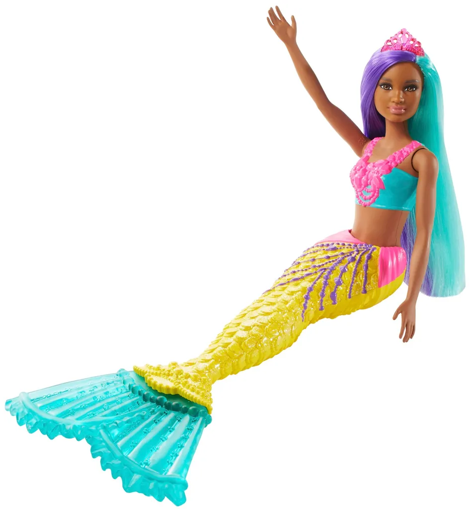 Barbie sirena lucena un largo cabello turquesa y morado para crear mil peinados