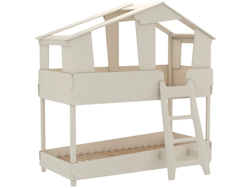 Welcher kleine Abenteurer träumt nicht von seinem eigenen kleinen Baumhaus? Mit „Tyler I“ ist man hier genau an der richtigen Adresse, denn es handelt sich um ein kompakt designtes Etagenbett im charmanten Baumhausdesign. Mit den Liegeflächen von jeweils 90 x 200 cm bietet es eine außergewöhnliche Schlafstätte für echte Abenteurer/innen.