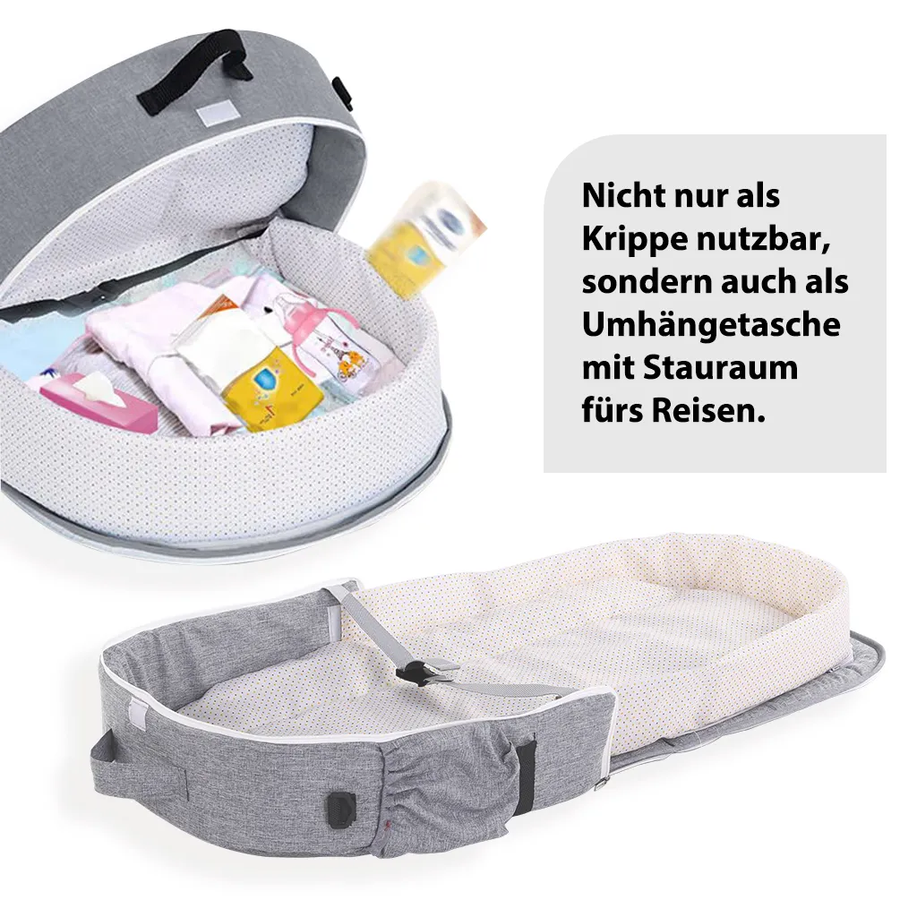 - Detail: 2 in 1 – Dieses tragbare Baby-Reisebett kann nicht nur als Wiege/Krippe/Nestchen verwendet werden, sondern kann auch in eine Trage- und Umhängetasche gefaltet werden. Die Umhängetasche bietet Stauraum für Ihren Babybedarf, wie z. Bsp. Kleidung, Flaschen, Pflegetücher etc. Sie ist geeeignet für den Innen und Außenbereich.