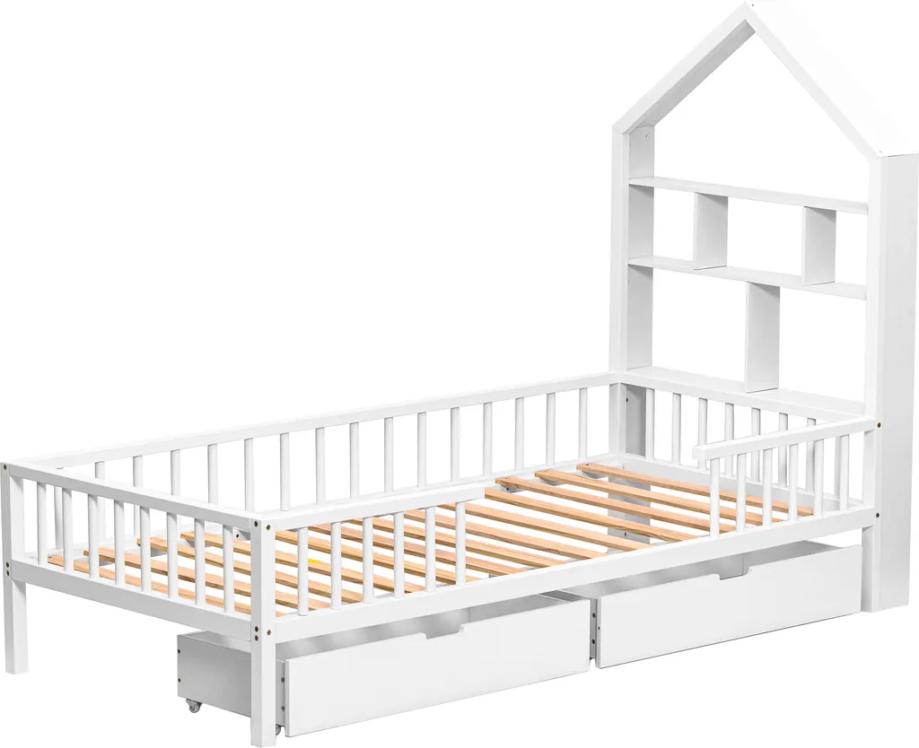 🌱【Mehrere Funktionen】Dieses Möbel vereint die Funktionen eines Bücherregals und eines Bettes. Das Kopfende dieses Kinderbettes ist ein Bücherregal oder kann als Regal verwendet werden, es kann Bücher, Werkzeuge und einige kleine Gegenstände für Kinder aufnehmen. Dieses Kinderbett verfügt außerdem über zwei große Schubladen zum Verstauen unter dem Bett. Das funktionale Design dieses Produkts ist durchdacht und sehr praktisch.