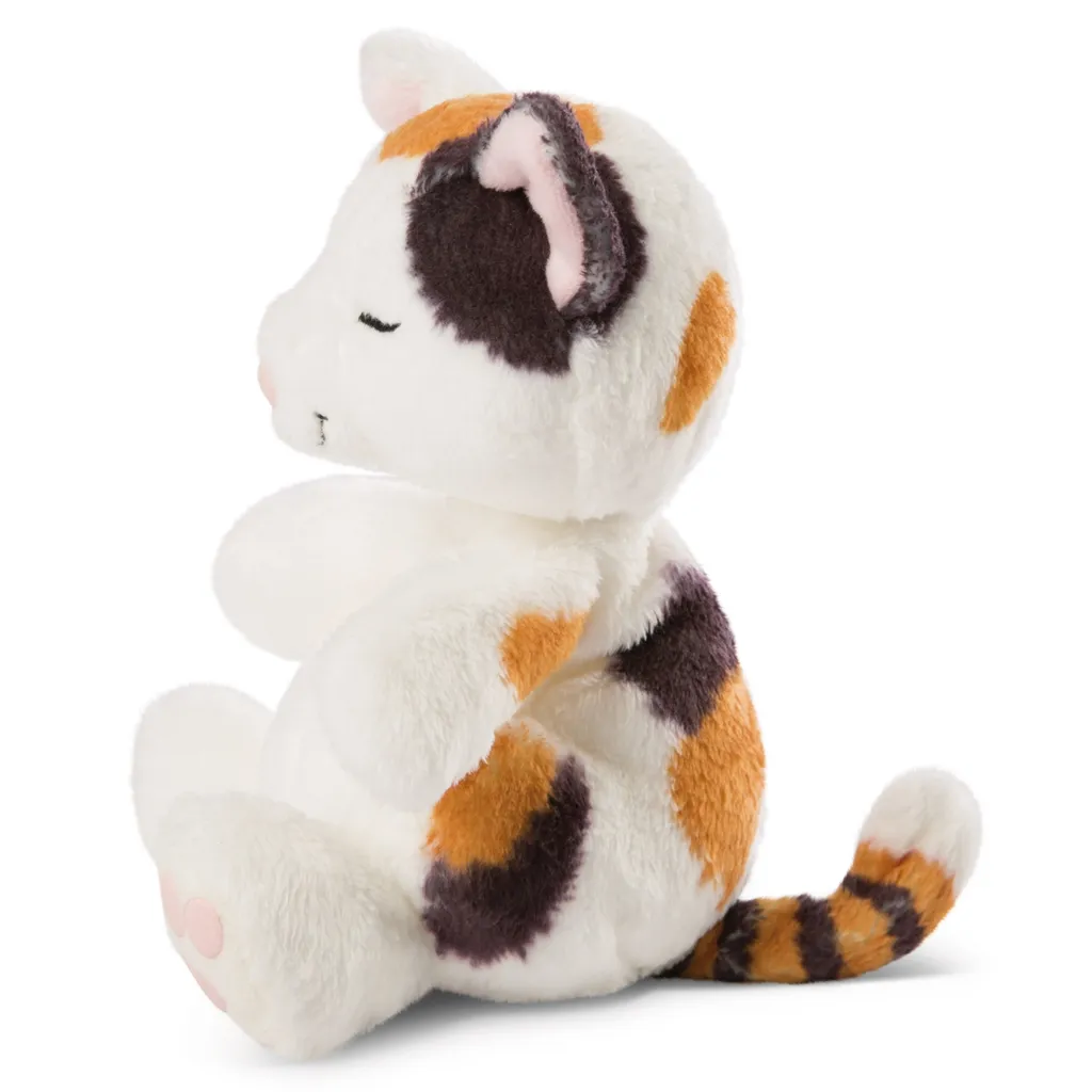 Die Kuscheltier Katze aus der Sleeping Kitties Kollektion ist super flauschig und weich wie es sich für kleine Kätzchen gehört. Die kleine Katze mit der rosa Nase und der niedlichen 3-farbigen Zeichnung liegt in ihrem rot-rosanen Körbchen eingekuschelt und lässt es sich gut gehen. Die geschlossenen bestickten Augen drücken ihr Wohlbefinden aus.