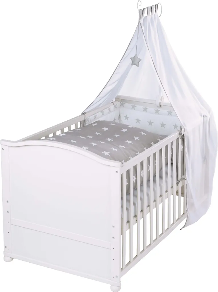 Roba Kombi-Kinderbettset ‚Sterne Grau‘, 70×140 Cm, Weiß, Umbaubar Zum Juniorbett