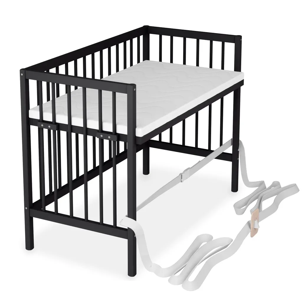 Zur Herstellung des Stubenwagens verwenden wir nur Buchenholz aus nachhaltig bewirtschafteten Wäldern. Die praktische stufenlose Höhenverstellbarkeit zeichnet das Babybett Premium besonders aus. Die Höhe der Liegefläche kann ganz individuell an die Höhe des Elternbettes angepasst werden – das erhöht die Sicherheit und Stabilität des Bettchens enorm. Ein 4,5 m langer Gurt zum Befestigen am Elternbett ist im Lieferumfang enthalten. Mit der separat erhältliche Umbauseite und den dazugehörigen gummierten Rollen, lässt sich das Beistellbett im Handumdrehen zum Stubenwagen umfunktionieren. Mit einer Liegefläche von 90×55 cm haben auch große und aktive Babys genügend Platz im Bett.