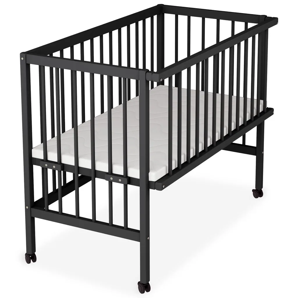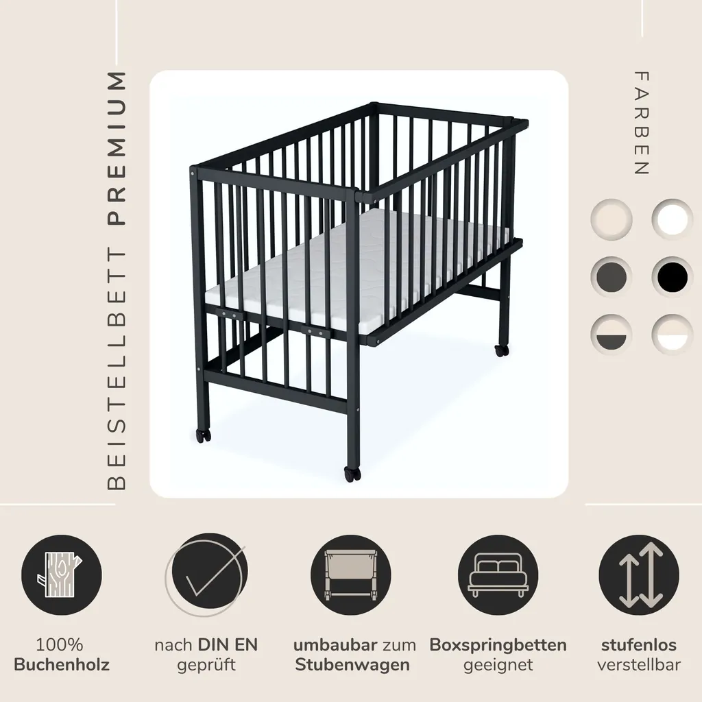✔ Sämann Beistellbett Premium 90×55 cm – Beistellbett Baby Boxspringbett, Stubenwagen mit Rollen, Beistellbett aus Buchenholz, Beistellbett 4 in 1