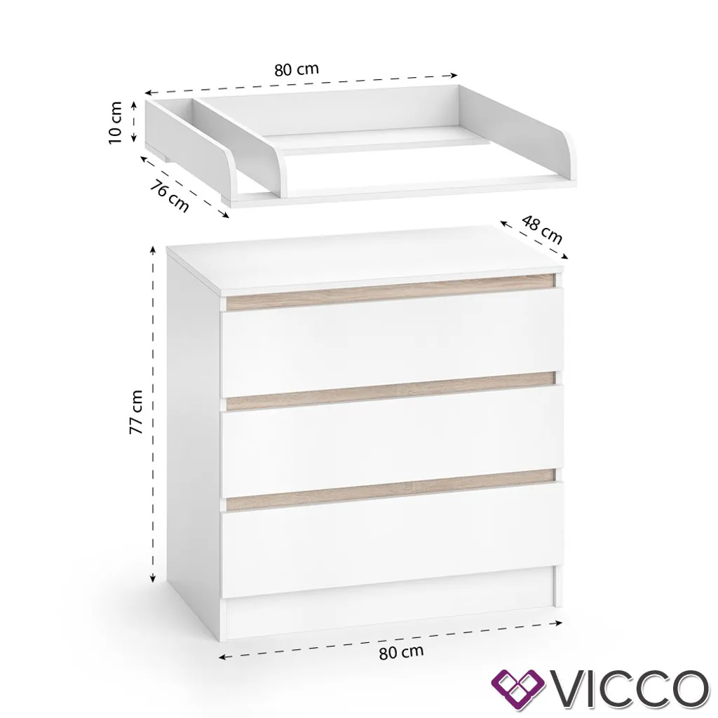 Wickelauflage: 80 x 10 x 76 cm (BxHxT)